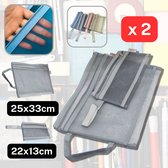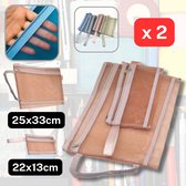 Set de 2 SACS/POCHES/POCHETTES chacun avec 2 COMPARTIMENTS et Fermetures éclair, ÉDITION LUXE, 1 au format A6 et 1 au format A4, couleur VERT