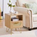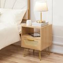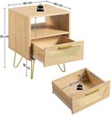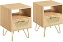 Set de 2 tables de chevet, design en rotin, table d'appoint avec 1 tiroir et 1 compartiment de rangement ouvert, table de chevet, pieds en métal, table de chevet, table de canapé pour chambre/salon, marron clair
