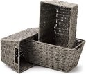 Set de 3 bacs à papier - gris - paniers de rangement en osier tissé avec poignées - EZOWare - panier de papier toilette conteneur organisateur multifonctionnel