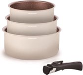 - Set de 3 poêles (16-18-20 cm) + 1 poignée amovible