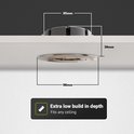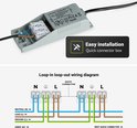 Le spot encastré Naples LED est facile à installer en raison de la faible profondeur d'installation de 39 mm et du transformateur inclus. Les dimensions du transformateur 120x44x23 mm garantissent qu'il passe facilement à travers le trou de scie du spot. Le transformateur est conçu de manière à pouvoir être connecté sans utiliser d'outils tels qu'un tournevis ou des borniers, très simple. Veuillez noter que le transformateur est placé au plafond à côté du spot, ce qui permet au spot de mieux dissiper sa chaleur.