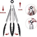 Set de 3 pinces de service en silicone - Pinces à BBQ - Pinces à viande - Pinces de Pinces de cuisine - Argent/ noir