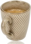 Les tasses à café et à thé en céramique ont une couleur beige chaude et un design à pois subtil qui s'intègre parfaitement à n'importe quel intérieur. Grâce à la poignée pratique, les tasses à café avec anse tiennent confortablement dans votre main et vous pouvez boire votre boisson chaude préférée sans aucun effort. Cet ensemble de tasses à café en faïence allie fonctionnalité et look moderne et convient à un usage quotidien.