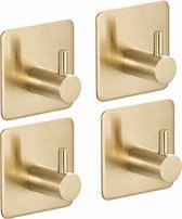 Set de 4 crochets à serviette sans Embouts - Acier inoxydable - Or - Carré Auto-adhésif - Badjas - Porte-torchon Cuisine Crochets à serviette de salle de bain