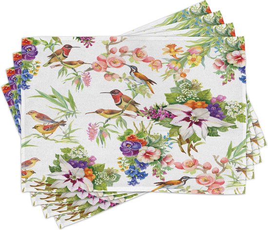 Set de 4 sets de table à manger motif floral exotique New Bed, tissu lavable avec envers antidérapant