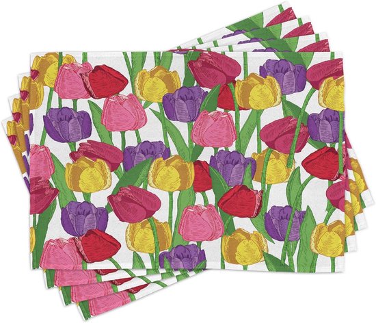 Set de 4 sets de table à manger New Bed Tulip à motifs floraux répétés, tissu lavable avec envers antidérapant