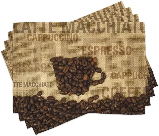 Set de 4 sets de table en forme de Grains de café , motif New Bed Brown, lavables et antidérapants.