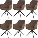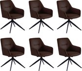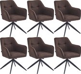 Set de 6 chaises de salle à manger MCW-L80, chaise de cuisine rembourrée avec accoudoirs, pivotante, métal tissu/textile ~ marron