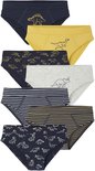 Lot 7 slips garçon rayés all over print dinosaures 95% coton, 5% élasthanne.