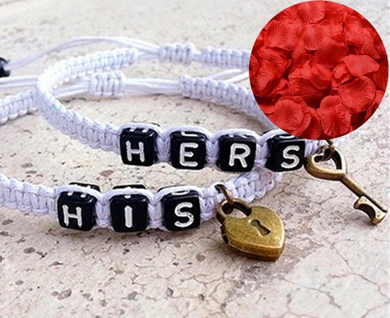Set de bracelets pour elle et lui + pétales de rose = forfait Saint-Valentin pour Hem et Cheveux