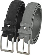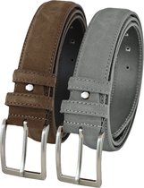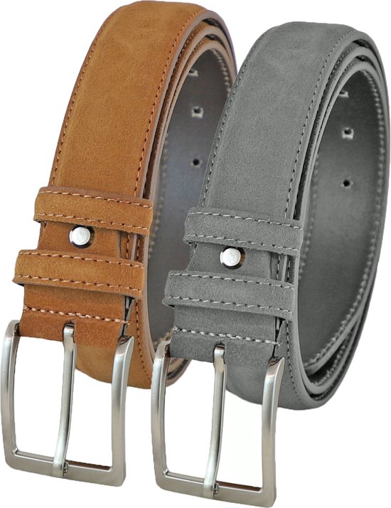 Set de Ceintures de Pantalon en daim Landley - Duopack de Ceintures pour hommes en cuir suédé - Cuir - Cognac et Grijs - Longueur totale 110 cm / Taille de ceinture 95