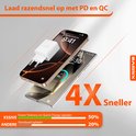 Ce chargeur rapide prend en charge la technologie PPS, ce qui signifie qu'il s'adapte automatiquement à l'appareil connecté. De cette façon, vous obtenez toujours une alimentation électrique optimale, sans que votre batterie ne soit inutilement sollicitée. De plus, la puce protège votre appareil contre les courts-circuits et la surchauffe. Cela signifie que l'état de la batterie de votre appareil restera bon pendant des années, ce qui le rend beaucoup plus durable !