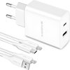 Adaptateur Power 20 W avec 2 Portes et 2 Câbles Lightning Apple - 1 mètre