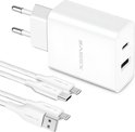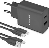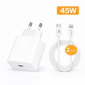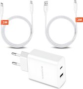 Adaptateur USB-C 35 W - Convient pour chargeur rapide iPhone 14 13 12 11 - 1 mètre - Chargeur rapide avec 2 Portes USB-C -