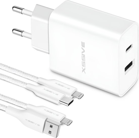 Chargeur rapide compatible avec iPhone 14, 13, 12, 11, X Pro Max Mini Plus - 1 mètre - Set chargeur - Xssive Original