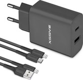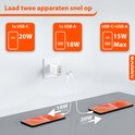 La prise USB-C dispose d'un port USB-A et USB-C pour que vous puissiez charger deux appareils en même temps. Si vous utilisez les deux ports, vous obtenez un total de 15 W de puissance ; cela ne fonctionne que pour charger les téléphones. Lorsque vous utilisez un seul port, vous pouvez charger très rapidement avec 20 W grâce à Power Delivery. La règle ici est que si vous avez besoin de votre téléphone ou de votre tablette rapidement, utilisez un port pour charger jusqu'à 4 fois plus rapidement. Vous n’avez pas besoin de votre appareil tout de suite ? Utilisez ensuite les deux ports pour de meilleurs résultats en matière de santé de la batterie.