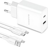 Chargeur iPhone Dual USB-A + 2x Câble Lightning - 1 Mètre - Prise USB iPhone - Chargeur Rapide Apple - Chargeur Fast - Double Prise USB - USB A - 24W - Wit