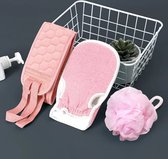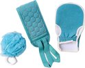 Set de gommage 3 pièces – Gants de pelage – Épurateur de dos – Élimine les cellules mortes de la peau – Gant de gommage – Éponge – Blauw