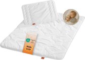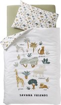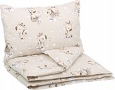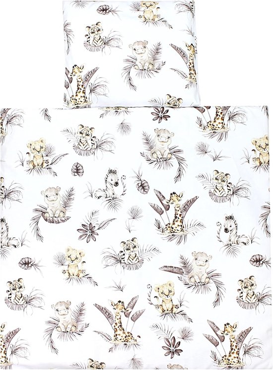 Créez un environnement de sommeil confortable et sûr pour votre tout-petit avec ce magnifique ensemble de lit bébé 4 pièces. L'ensemble comprend une couette et une dekbedovertrek de 80 x 80 cm, ainsi qu'un kussen et une taie d'oreiller de 35 x 40 cm, le tout conçu pour un confort et une chaleur optimaux. Le charmant design avec des lions et des feuilles dans des tons beiges doux ajoute une atmosphère ludique et apaisante à la chambre des enfants. Fabriquée à partir de matériaux de haute qualité doux pour la peau sensible de bébé, cette literie assurera une nuit de sommeil réparatrice à votre tout-petit. Les dimensions pratiques rendent cet ensemble idéal pour une utilisation dans les berceaux et les petits lits. Chaque composant est facile à entretenir et lavable en machine, ce qui le rend à la fois beau et fonctionnel pour un usage quotidien. Offrez à votre bébé le sommeil réparateur qu'il mérite avec cette parure de lit complète et élégante.