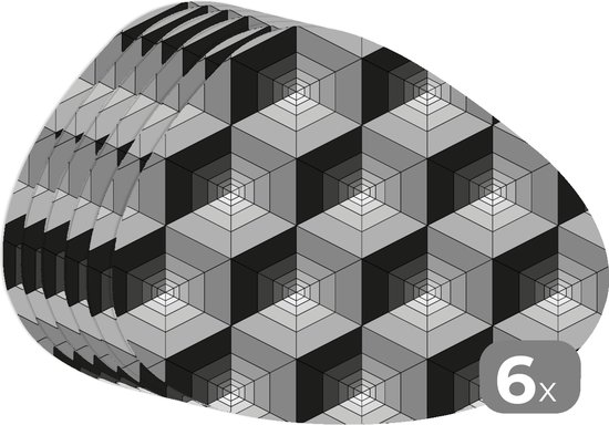 Set de table bio - Napperons bio - Blocs - Motifs - Cube - 3D - 6 pièces