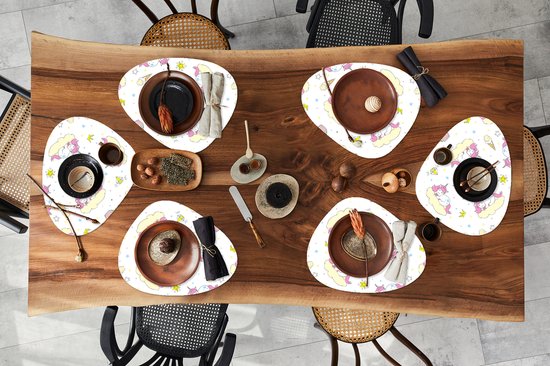 Set de table bio - Napperons bio - Sets de table - Licorne - Motifs - Arc-en-ciel - 6 pièces