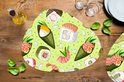 Set de table bio - Napperons de table bio - Dessous de verre - Motifs - Sushi - Japon - Vert - 10 pièces