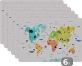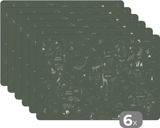 Set de table - Carte - Monde - Enfants - Vert - 45x30 cm - 6 pièces
