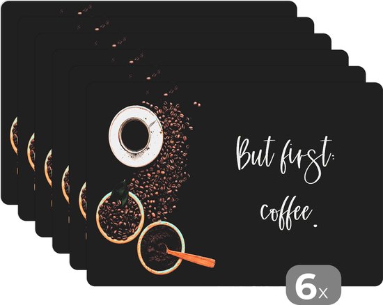 Set de table - Citations - Café - Proverbes - Mais premier café - 45x30 cm - 6 pièces - Résistant à la chaleur - Antidérapant - Coussinet - Amovible