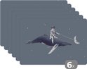 Set de Table - Enfant - Lune - Baleine - Ciel Etoilé - Rétro - Napperons de Table - Dessous de Verre - Table - 45x30 cm - 6 pièces