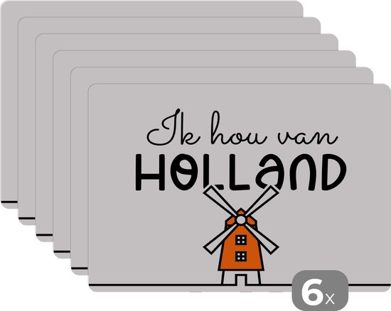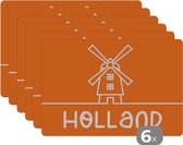 Set de table - Napperons de table en plastique - Holland - Moulin à vent - Oranje - 45x30 cm - 6 pièces - Résistant à la chaleur - Antidérapant - Coussinet - Amovible