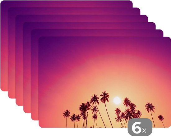 Set de table - Napperons de table en plastique - Soleil - Palmier - Été - 45x30 cm - 6 pièces - Résistant à la chaleur - Antidérapant - Pad - Amovible