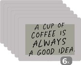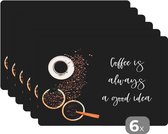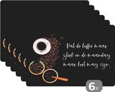Set de table - Napperons de table plastique - Cuisine - Que le café soit fort - Café - Espresso - 45x30 cm - 6 pièces - Résistant à la chaleur - Antidérapant - Coussin - Amovible