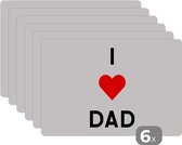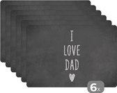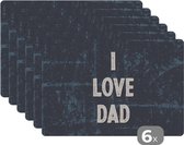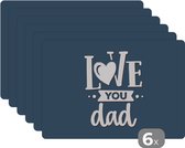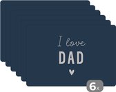 Set de table - Napperons de table plastique - J'aime papa - Citations - Énonciations - Vaderdag - 45x30 cm - 6 pièces - Résistant à la chaleur - Antidérapant - Coussinet - Amovible