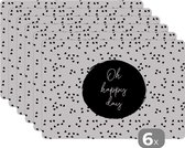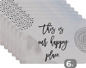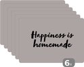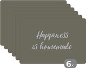 Set de table - Napperons de table synthétique - Citations - Proverbes - Le Happiness est fait maison - Le Geluk - 45x30 cm - 6 pièces - Résistant à la chaleur - Antidérapant - Coussinet - Amovible