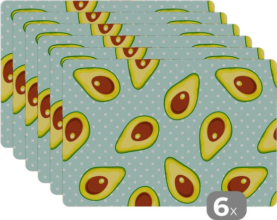 Set de table - Napperons en plastique - Avocat - Motifs - Pois - 45x30 cm - 6 pièces - Résistant à la chaleur - Antidérapant - Sous-couche - Amovible