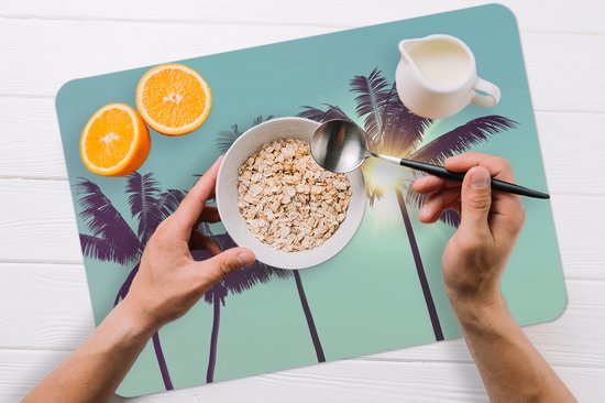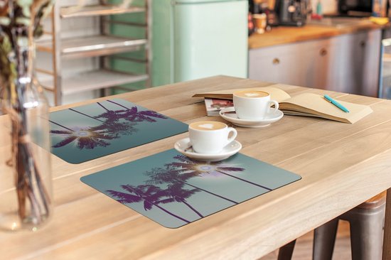 Set de Table - Napperons en Plastique - Palmiers - Été - Soleil - 45x30 cm - 6 Pièces - Résistant à la Chaleur - Antidérapant - Pad - Amovible