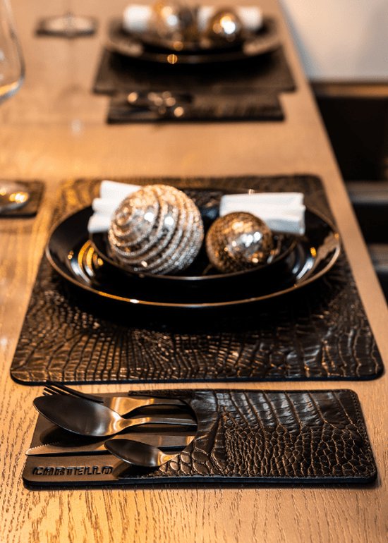 - Imprimé croco élégant : l'imprimé croco noir ajoute une texture subtile et une sophistication à votre table.