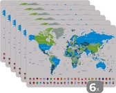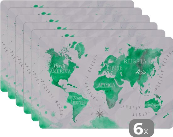 Set de table - Wereldkaart - Peinture à l'huile - Vert - 45x30 cm - 6 pièces