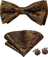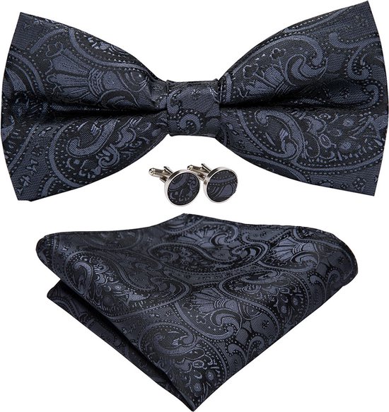 Set nœud papillon Sorprese - Pochette et Boutons de manchette inclus - 100 % soie - Paisley anthracite/ Zwart - Ensemble d'accessoires de Luxe pour homme - Nœud papillon - Nœud papillon