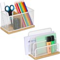 Set organiseur de bureau Relaxdays 2 pièces - corbeille à courrier - plumier - bambou et métal - blanc