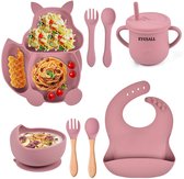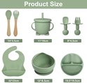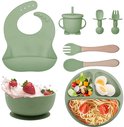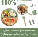 Set Services de table Bébé 8 pièces ( Siliconen) : assiette à ventouse, gobelet, bavoir et Couverts | Passe au lave-vaisselle et au four. | Sans BPA | Vert clair