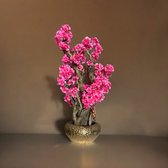 Cet arbre à fleurs artificielles mesure 75 cm de haut. Bel arbre plein avec deux nuances de fleurs. Cela fait « parler » davantage l’arbre.