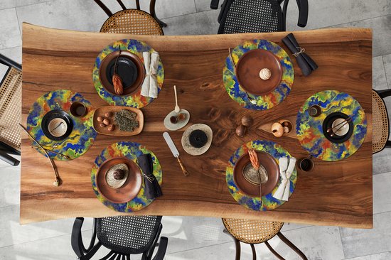 Les sets de table ont une forme ronde et sont en vinyle. Il est facile à nettoyer, par exemple avec un chiffon humide. De plus, les patins sont pourvus d'une couche antidérapante. En conséquence, ils ne se déplacent pas pendant l'utilisation. Un autre avantage est que les sets de table sont résistants à la chaleur. Vous pouvez donc y poser des casseroles chaudes en toute tranquillité !
