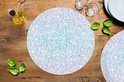 Les sets de table ont une forme ronde et sont en vinyle. Il est facile à nettoyer, par exemple avec un chiffon humide. De plus, les patins sont pourvus d'une couche antidérapante. En conséquence, ils ne se déplacent pas pendant l'utilisation. Un autre avantage est que les sets de table sont résistants à la chaleur. Vous pouvez donc y poser des casseroles chaudes en toute tranquillité !