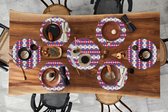 Les sets de table ont une forme ronde et sont en vinyle. Il est facile à nettoyer, par exemple avec un chiffon humide. De plus, les patins sont pourvus d'une couche antidérapante. En conséquence, ils ne se déplacent pas pendant l'utilisation. Un autre avantage est que les sets de table sont résistants à la chaleur. Vous pouvez donc y poser des casseroles chaudes en toute tranquillité !