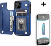 ShieldCase Wallet case iPhone 12 / iPhone 12 Pro - 6.1 pouces - bleu + verre protecteur d'écran