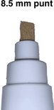 Avec cette pointe biseautée de 8,5 mm, vous pouvez dessiner des traits larges, mais aussi point par point avec des points.