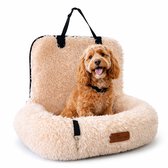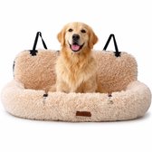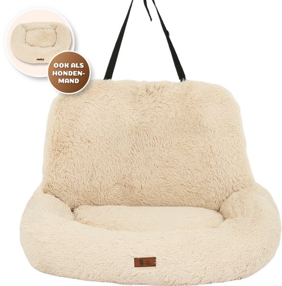 Siège auto Pet Perfect Fluffy pour chien - Panier de voiture avec sangles de sécurité - Panier 2 en 1 pour chien - Orthopédique - Antidérapant - Taille L - Beige