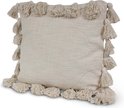 Sierkussen à Pompons Tissé Main Blanc Ivoire