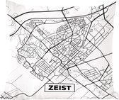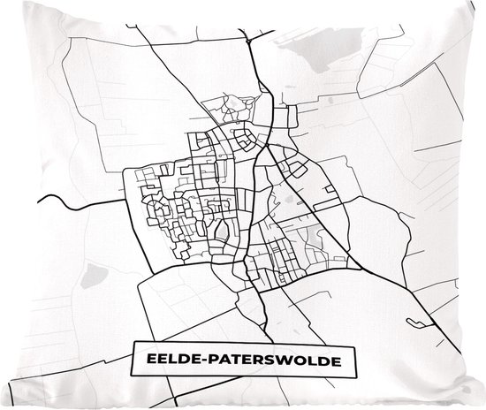 Sierkussen - Carte Eelde-paterswolde - Zwart Et Wit - 60 Cm X 60 Cm